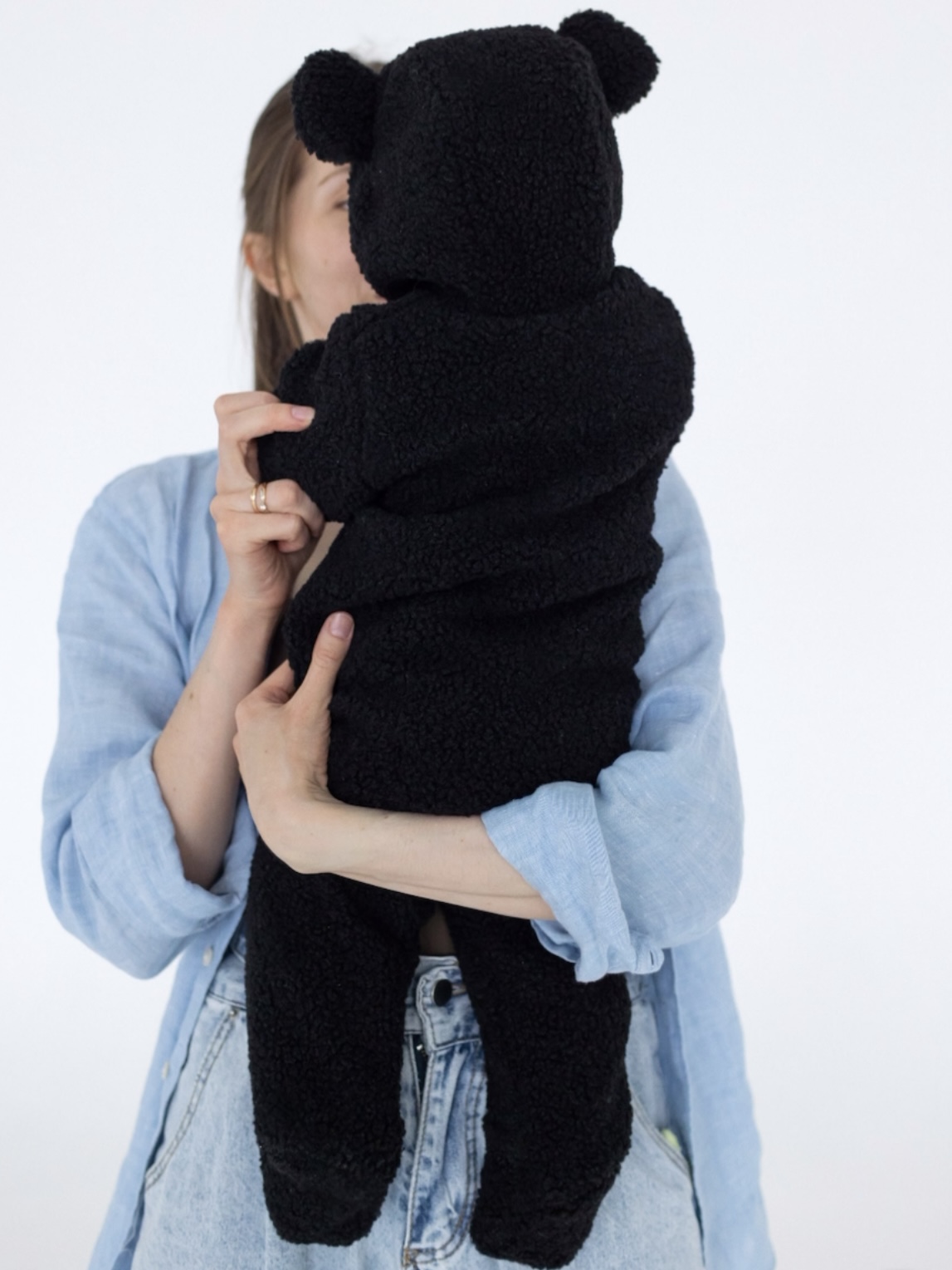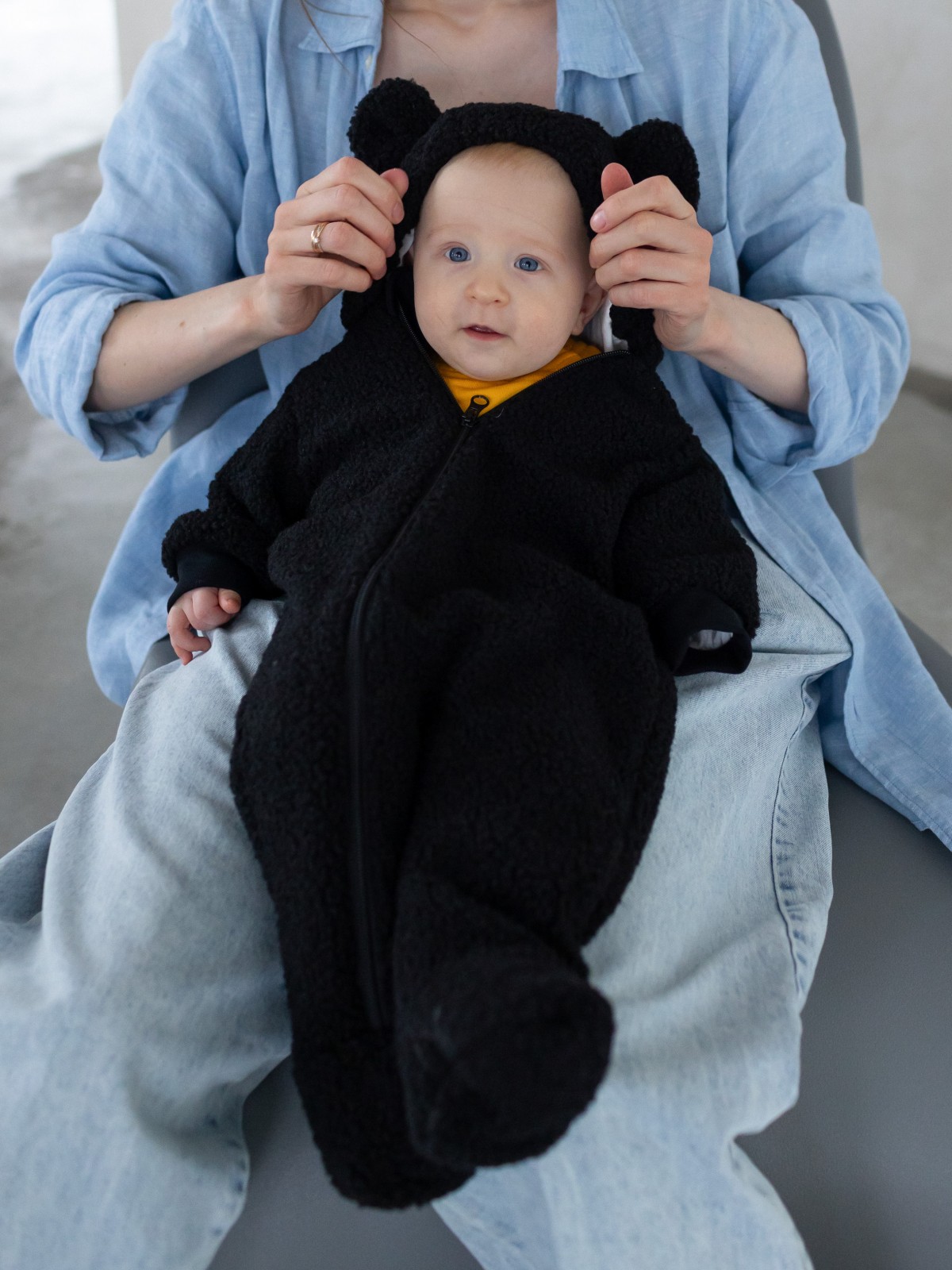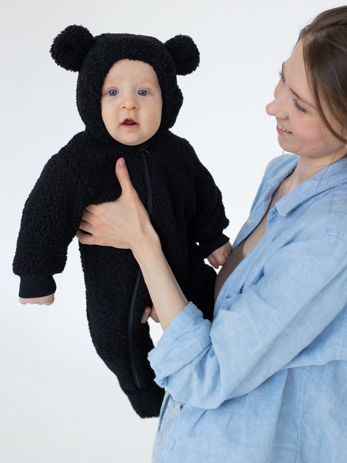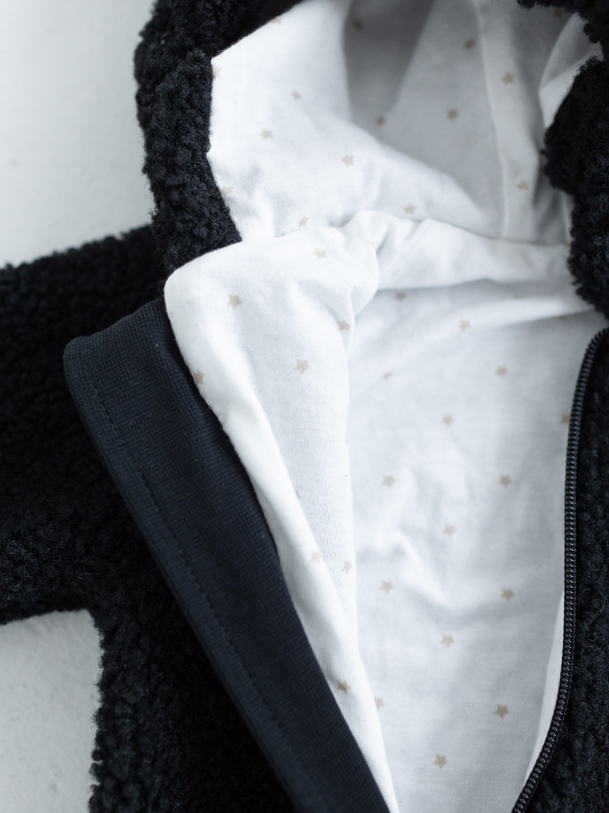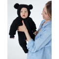 Модель выполнена из мягкой плюшевой ткани, которая не скользит и защищает малыша от ветра. Температурный режим утепленного комбинезона для новорожденных от +10°С (+8°С с теплым вторым слоем) до ветреных +20°С. У плюшевого комбинезона предусмотрены трикотажные манжеты на рукавах в 62-68 и 68-74 размерах, в размере 56-62 есть отвороты "закрывашки", чтобы сделать прогулки с новорожденным еще более комфортными. Ножки закрыты, под молнией есть ветрозащитная планка. Внутри комбинезона мягкий гипоаллергенный хлопковый подклад с маленькими звездочками. Капюшон утепленного комбинезона тедди для малышей удобный, вместительный, не мешает малышу во время прогулки в коляске или на ручках у мамы и папы, а ушки на капюшоне создают эффект «мишки», что делает комбинезон еще более «мимимишным» :)