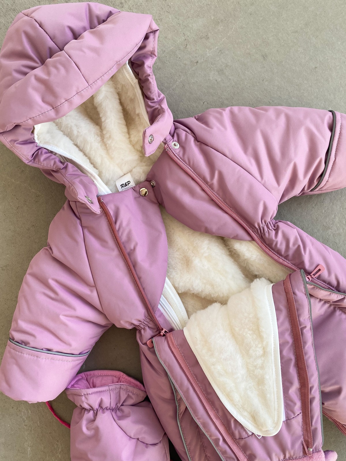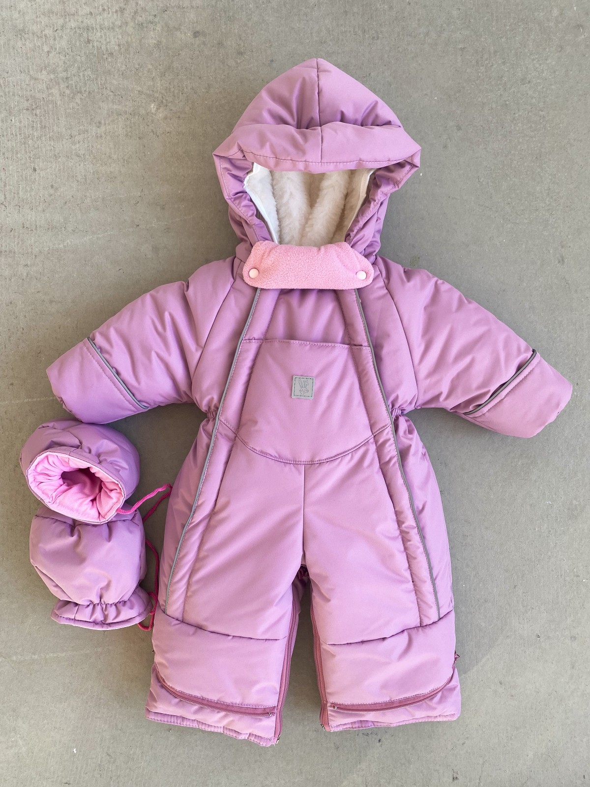 Комбинезон-трансформер со съемным подкладом из овчины – самый универсальный вариант верхней одежды для малыша от до 6/9/12 месяцев. Трансформер можно носить в форме конверта, что идеально для выписки, комбинезона с закрытыми ножками и комбинезона с открытыми ножками. Съемный подклад из овчины делает комбинезон практически всесезонным: без подклада комбинезон можно носить от +15°С до -5°С, с подкладом до -35°С. Дополнительные характеристики комбинезона-трансформера: состав съемного подклада: 70% шерсть, 30% ПЭ, состав несъемного подклада 100% хлопок; отвороты на рукавах; пинетки в комплекте.