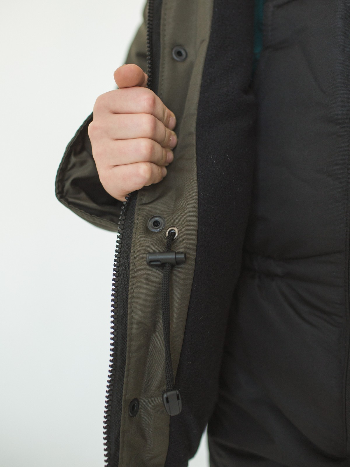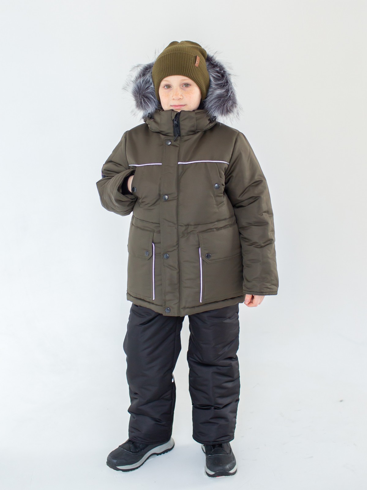 Зимний костюм, состоящий из удлиненной куртки и полукомбинезона – стильный, теплый и универсальный вариант верхней одежды для мальчиков от 2 до 7 лет.. В костюме предусмотрены подвороты рукавов и штанин до 5-6 см, что актуально для тех, кто рассматривает покупку костюма более чем на 1 сезон. Дополнительные характеристики зимнего костюма: ветрозащитная планка под молнией; кулиска на талии; трикотажные манжеты внутри рукавов; плотная резинка внизу штанин; мех искусственный (съёмный, гипоаллергенный); съемный капюшон; светоотражающие элементы.